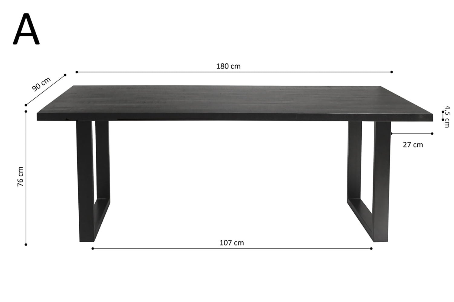 Van deze prachtige eetkamertafel heb je lang plezier! De tafel heeft een robuust metalen frame en een 4,5 cm dik houten blad! De afstand tussen de poten bedraagt 107 cm. Een echte aanwinst voor je keuken of woonkamer.
