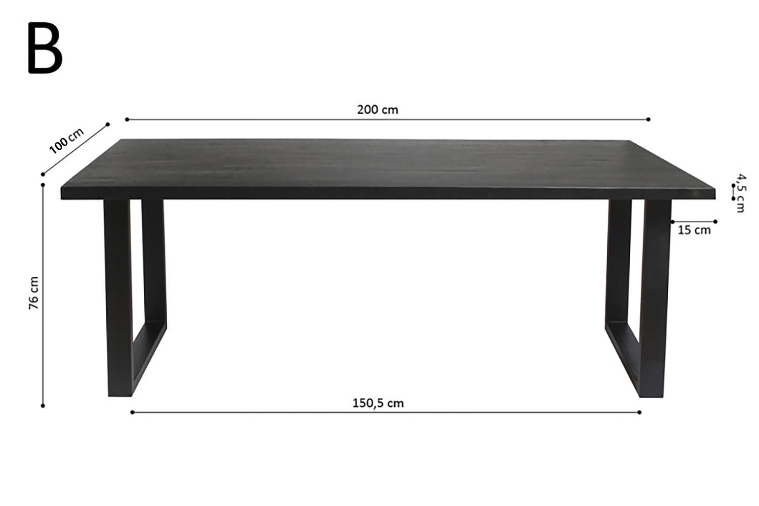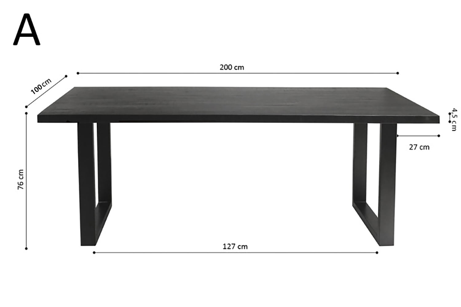 Van deze prachtige eetkamertafel heb je lang plezier! De tafel heeft een robuust metalen frame en een 4,5 cm dik houten blad! De afstand tussen de poten bedraagt 127 cm. Een echte aanwinst voor je keuken of woonkamer.