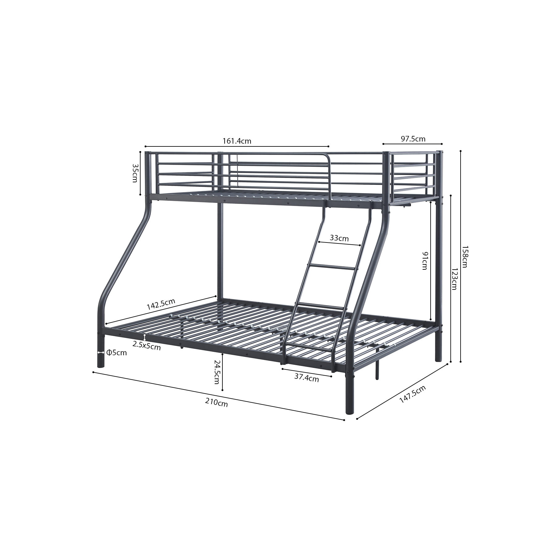 Dit stapelbed is ontworpen voor praktisch gebruik zonder gedoe. Het onderste bed van 140×200 cm biedt plek voor twee personen, terwijl het bovenste bed van 90×200 cm geschikt is voor één persoon. Zo creëer je eenvoudig drie slaapplaatsen in één compacte opstelling.
