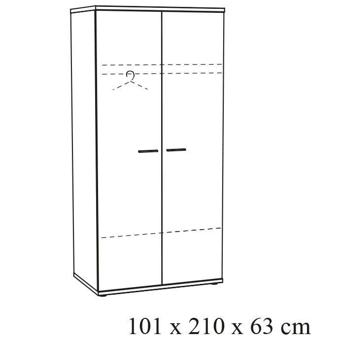 Deze royale tweedeurs-draaideurkast kast heeft bovenin achter beide deuren een legplank en daaronder hangt een kledingroede. Onderin zis nogmaals een legplank voorzien. Zie ook tekening van kast bij de foto’s.