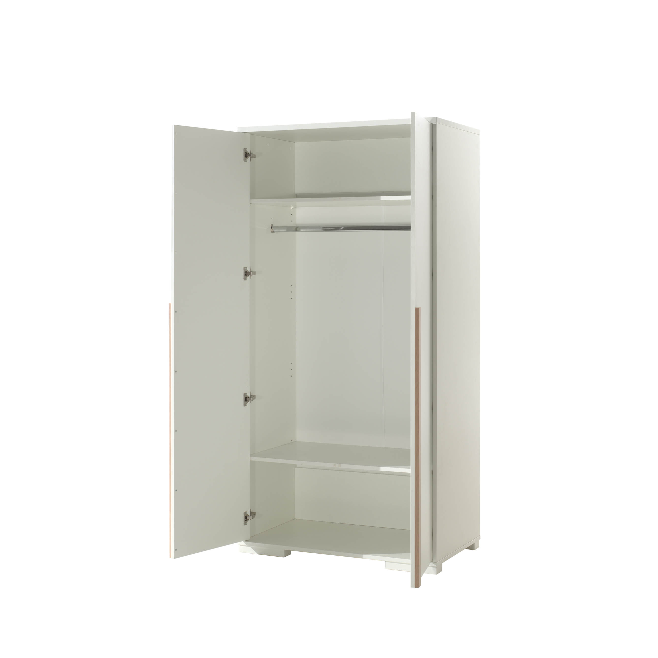 Deze handige tweedeurskast biedt voldoende ruimte voor al je kleren. Achter de openslaande deuren bevinden zich twee legplanken in combinatie met een kledingroede over de gehele breedte van de kast. De kast is vervaardigd uit een stevige vezelplaat en afgewerkt in een sterke melamine. Leuk te combineren met de andere meubelen uit deze serie.