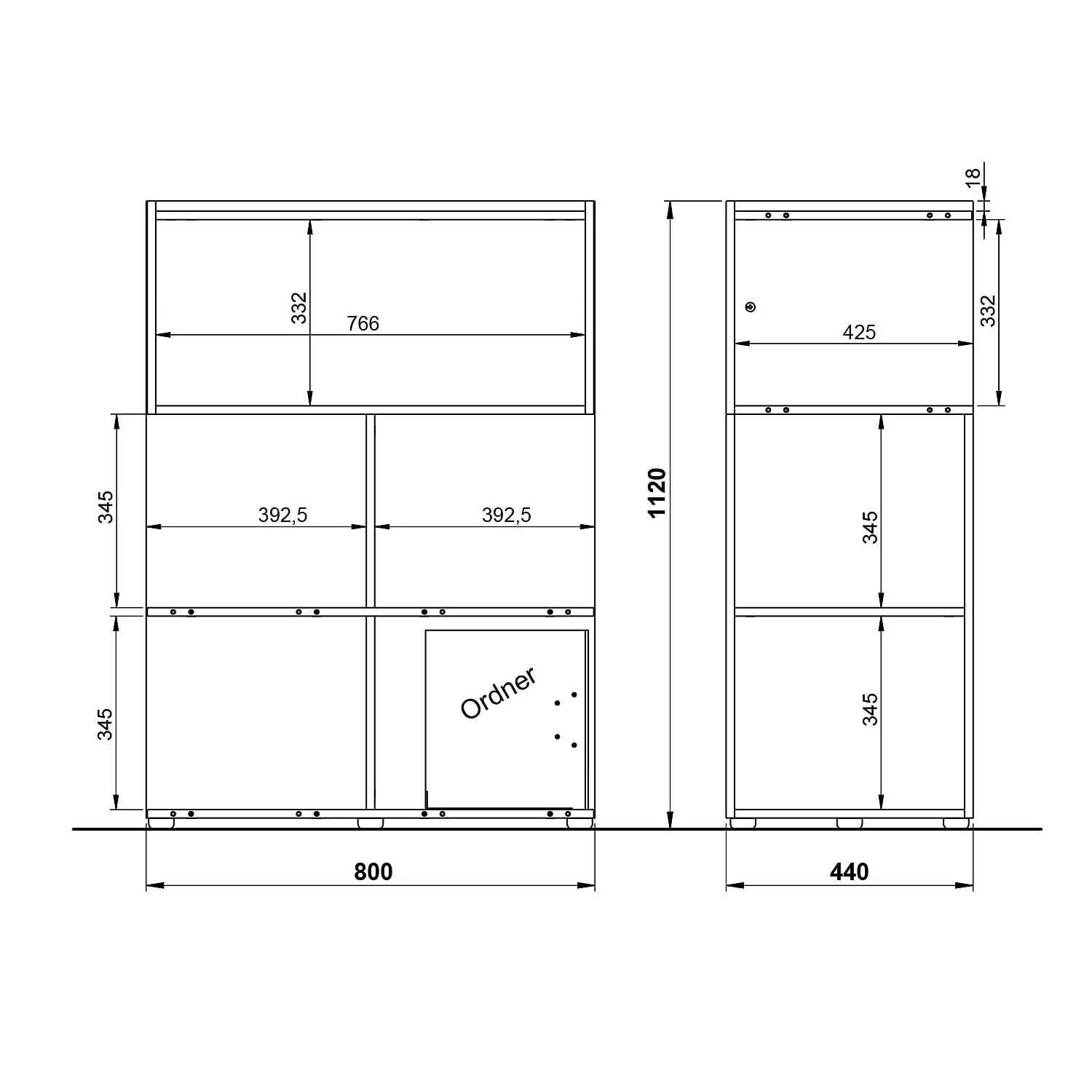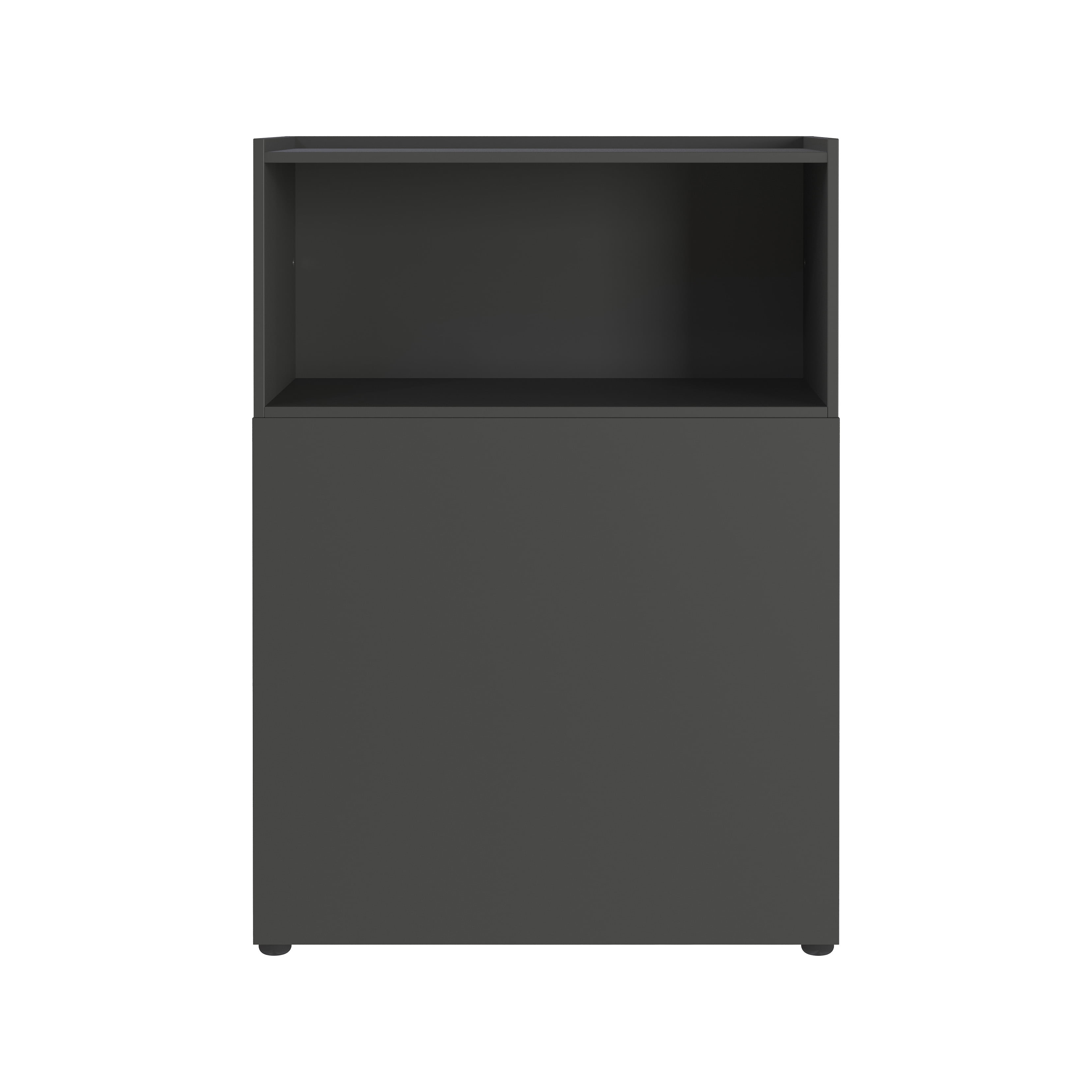 Met een ruim open compartiment bovenaan, geschikt voor objecten tot 20 kg, en vier kleinere vakken eronder, elk belastbaar tot 20 kg, is deze kast ideaal voor diverse opbergdoeleinden.