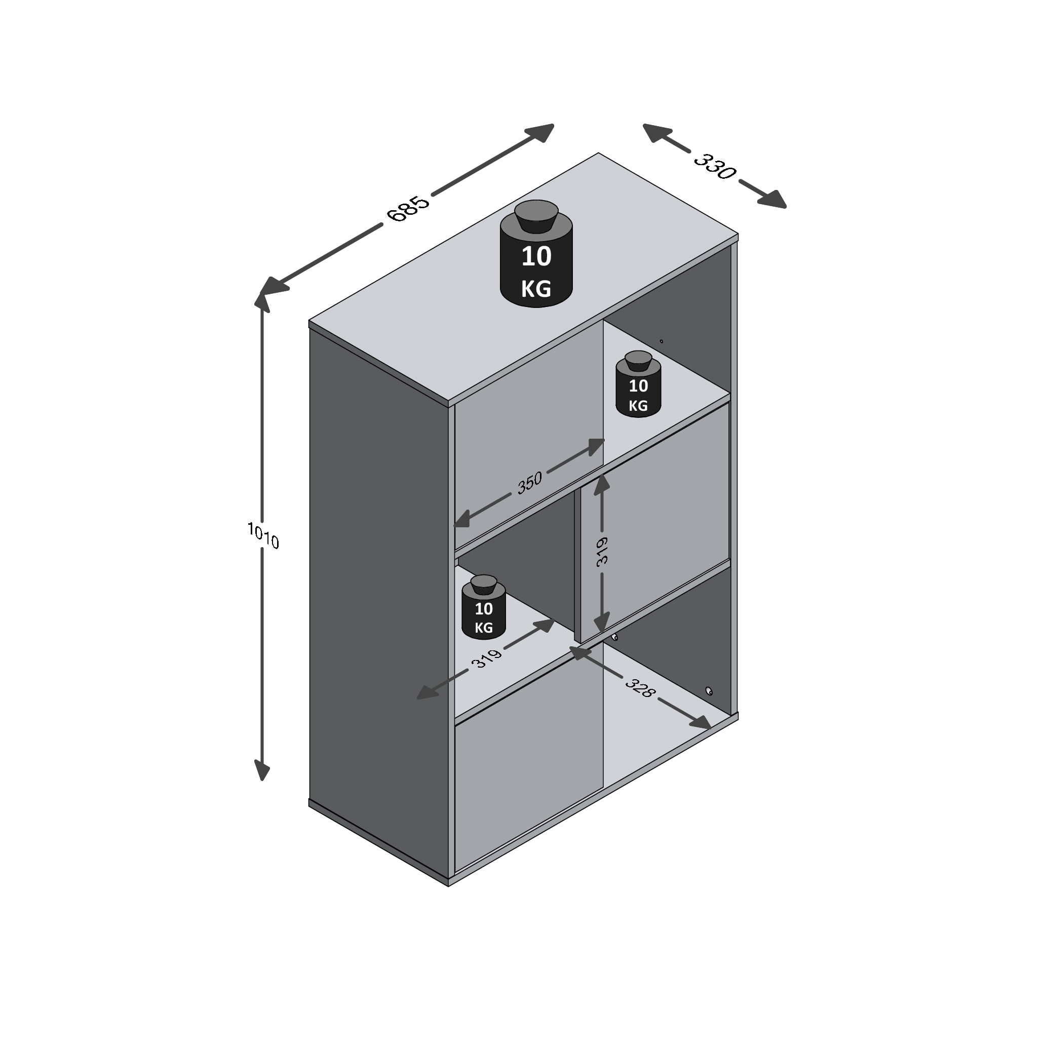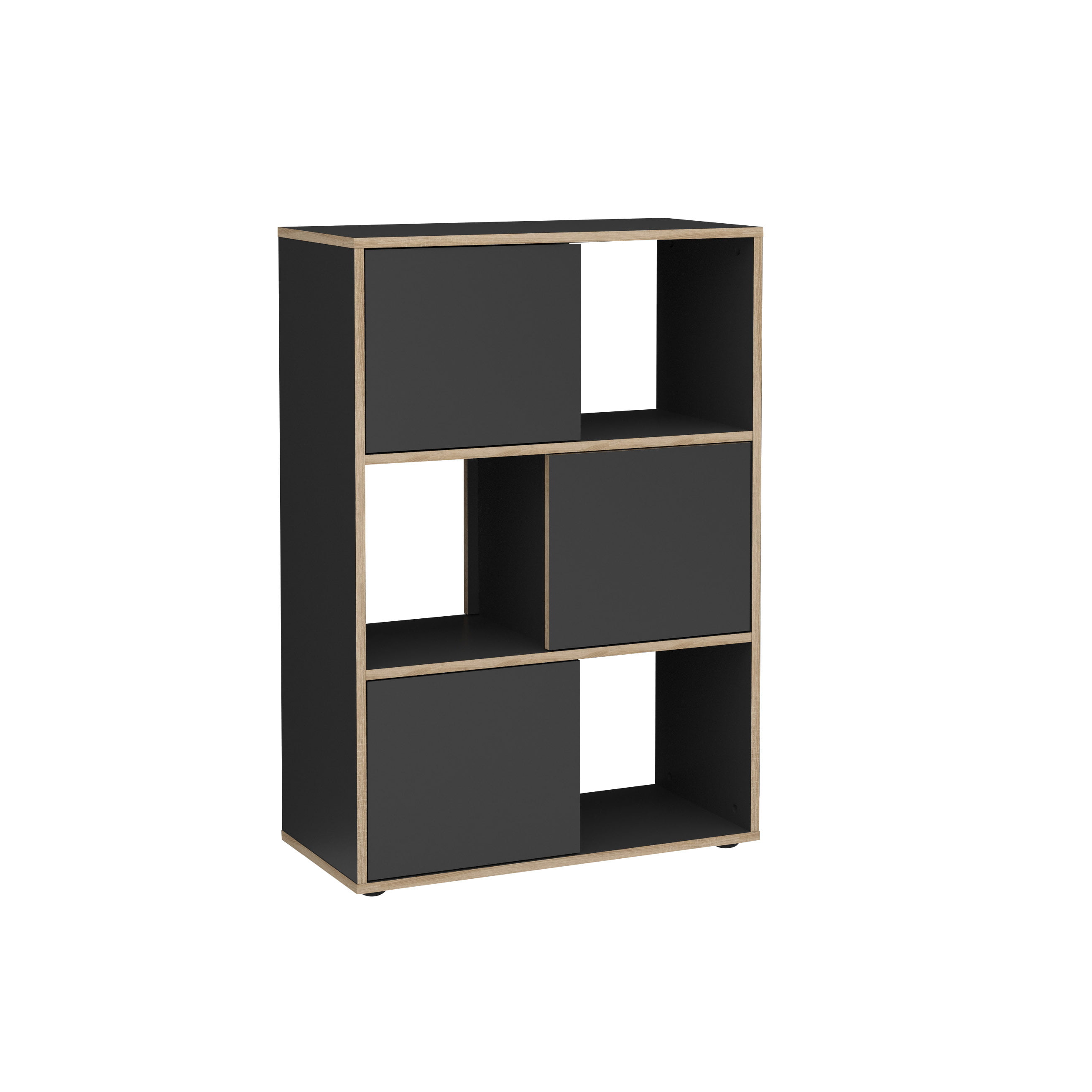 De vakkenkast Werner in antraciet en eiken is een stijlvolle opbergoplossing voor je woon- of werkkamer. Met meerdere open vakken biedt deze kast voldoende ruimte om je favoriete decoratieve items of boeken overzichtelijk te presenteren. Het speelse ontwerp en de combinatie van antraciet met eiken geven de kast een eigentijdse uitstraling.