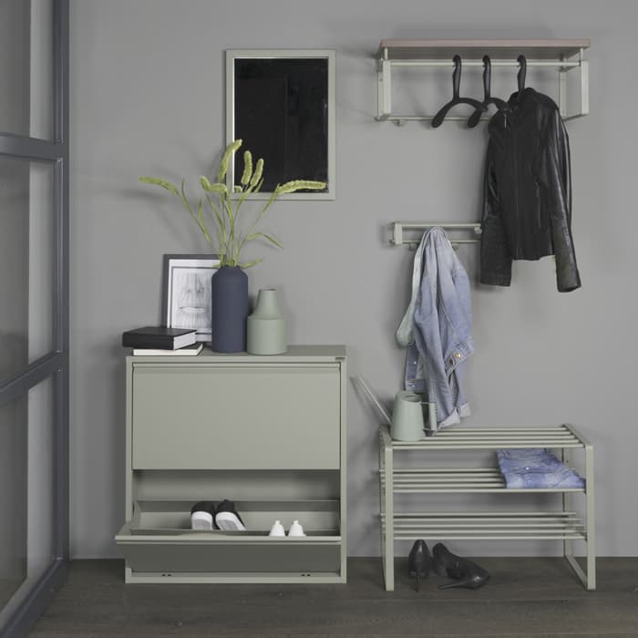 Stevige kapstok met meerdere haken en een roede om al je kledingstukken op kwijt te kunnen. De ruimte bovenop kan bovendien goed gebruikt worden voor sjaals, hoofddeksel of andere accessoires.