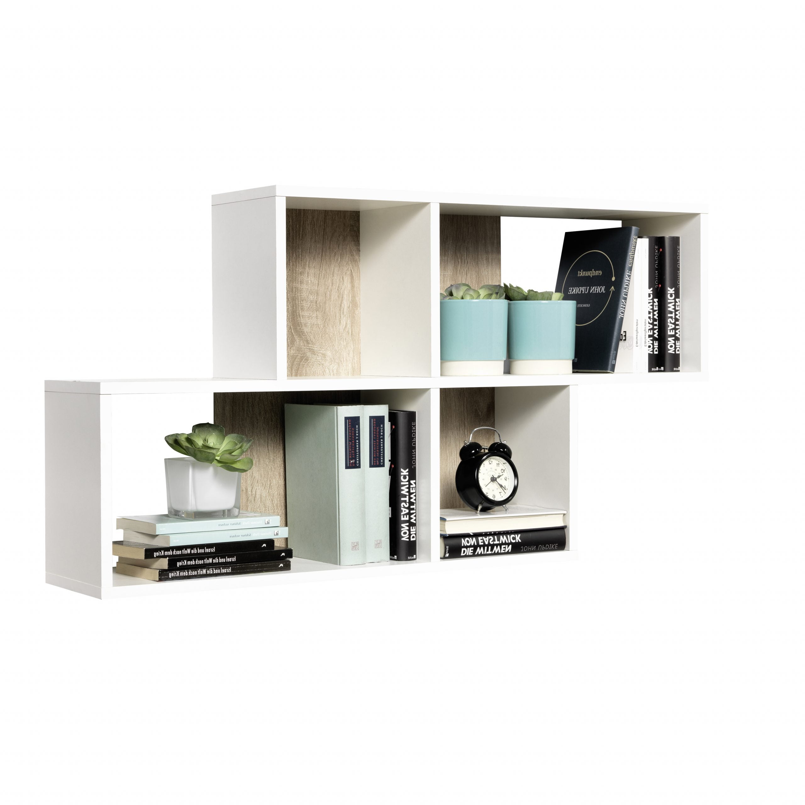 Dit open design wandrek van 100cm breed heeft 4 open vakken met een witte achterwand. Het is vervaardigd uit stevige milieuvriendelijke meubelplaat met een mooi melamine afwerking. Geschikt voor je lectuur, een vaasje, een potje etc.