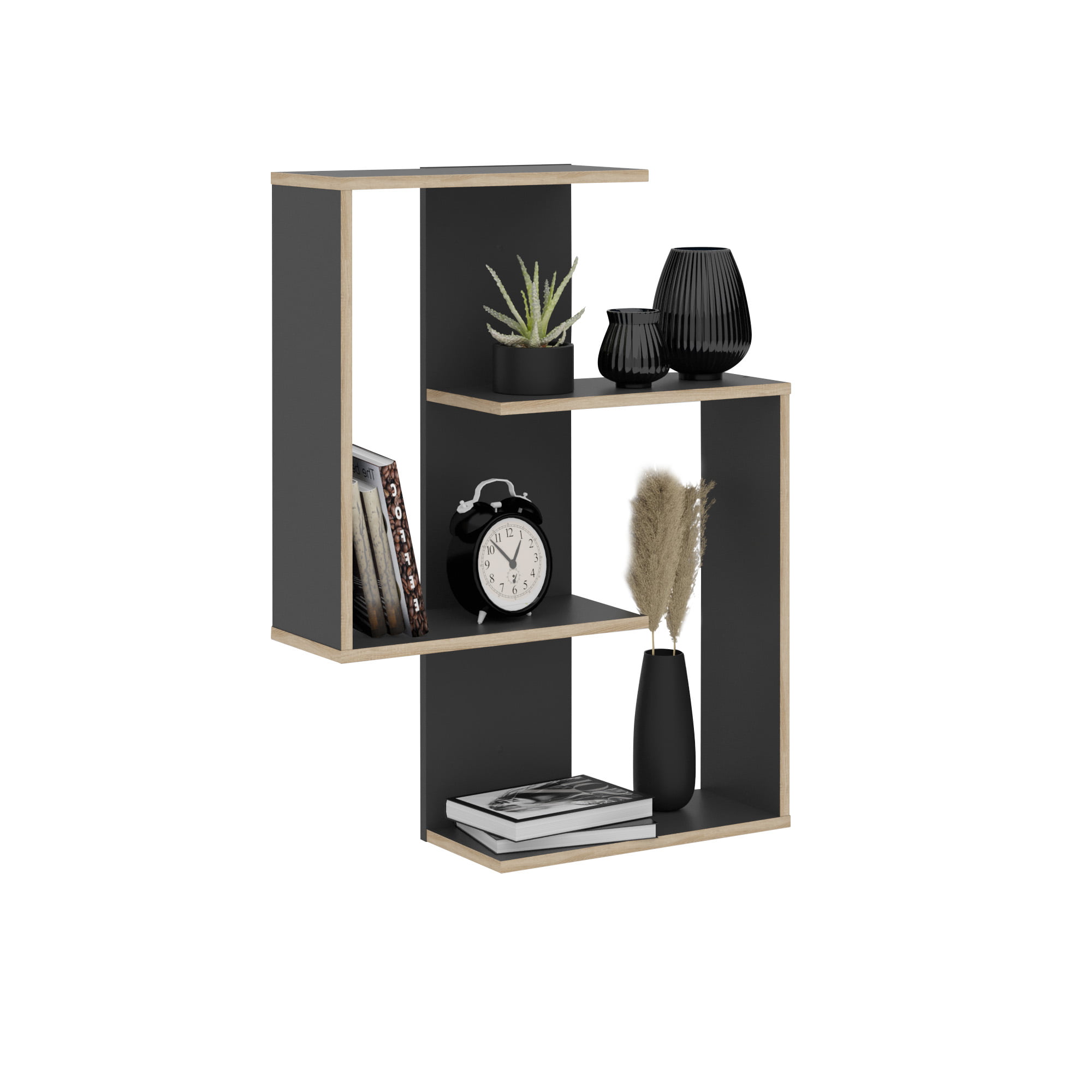Het wandrek Venus in antraciet en eiken combineert moderne elegantie met een warme houtlook. Dit stijlvolle wandrek biedt ruimte voor boeken, planten of decoratie en is een subtiele blikvanger in je interieur. De combinatie van antraciet en eiken zorgt voor een trendy uitstraling.