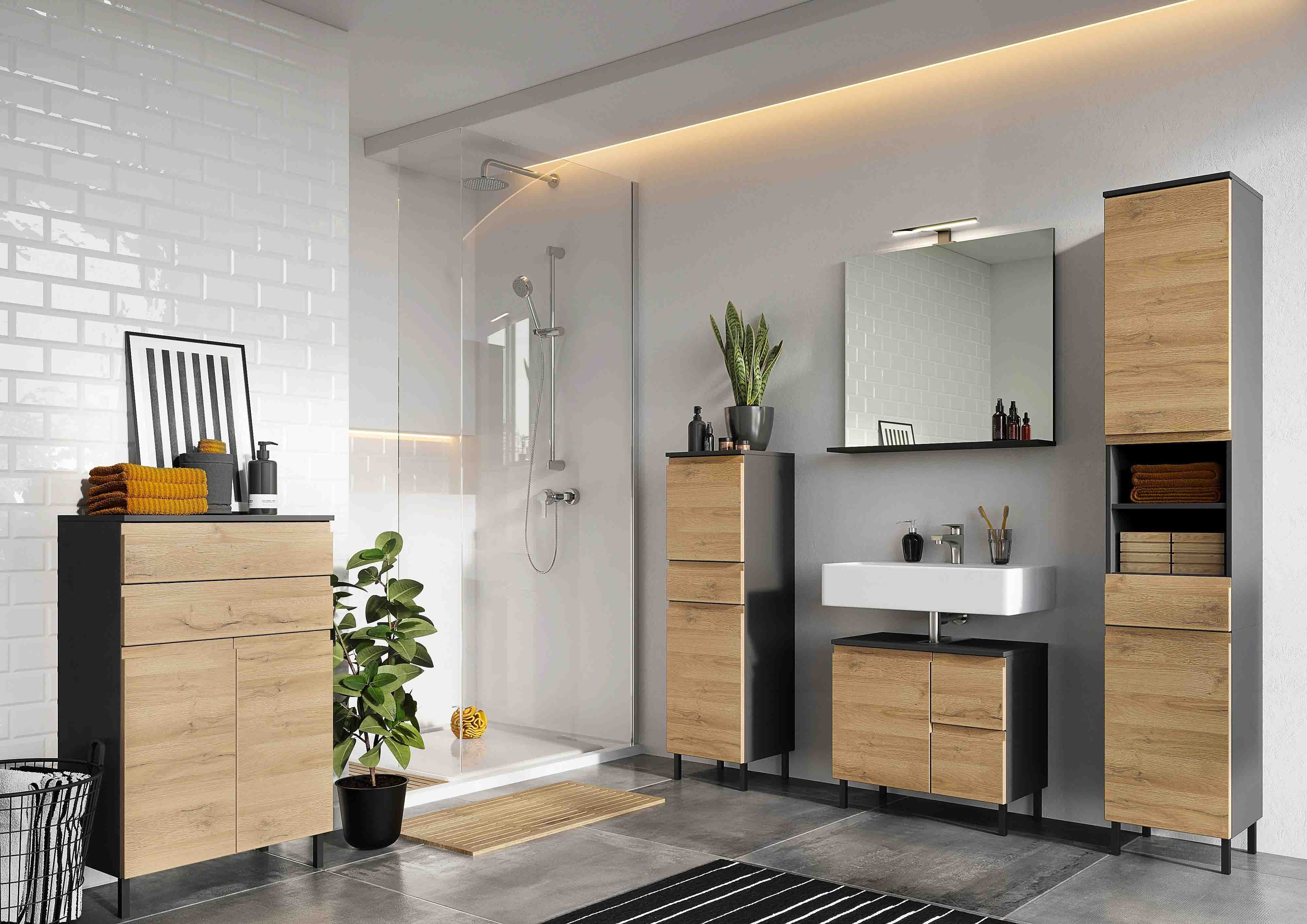 Dit veelzijdige badkamerprogramma past gemakkelijk in elk interieur. De greep loze deuren en laden sluiten zacht en geruisloos en accentueren de meubelen. De kasten zijn naar eigen wens in te delen mede door de verstelbare legplanken. De meubelen zijn van degelijke kwaliteit en gemakkelijk te monteren middels de duidelijke montagehandleiding. De randen zijn stootvast dankzij de ABS-kantafwerking en door de sterke melamine afwerking gemakkelijk schoon te houden. Bekijk ook de andere elementen uit deze badkamerserie!