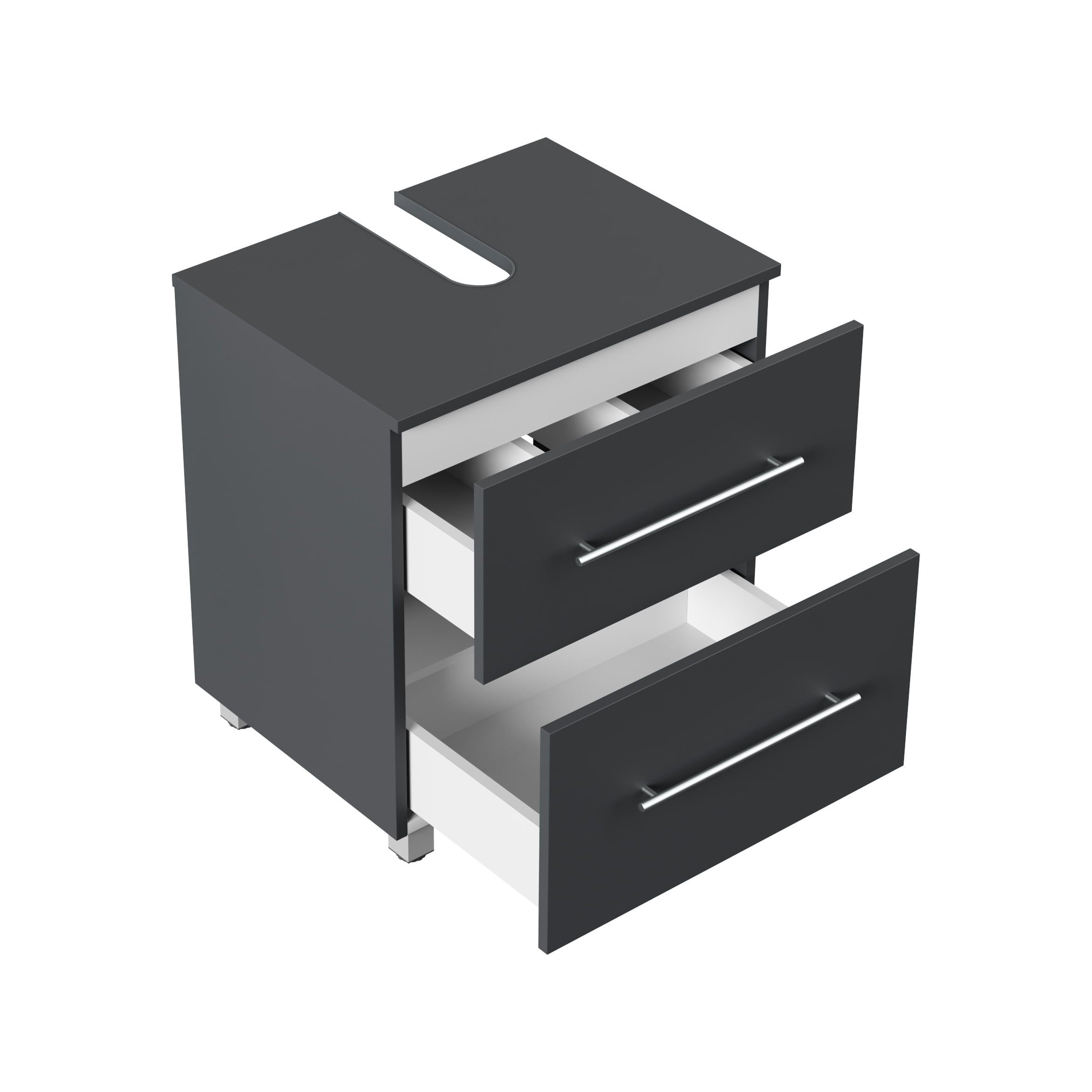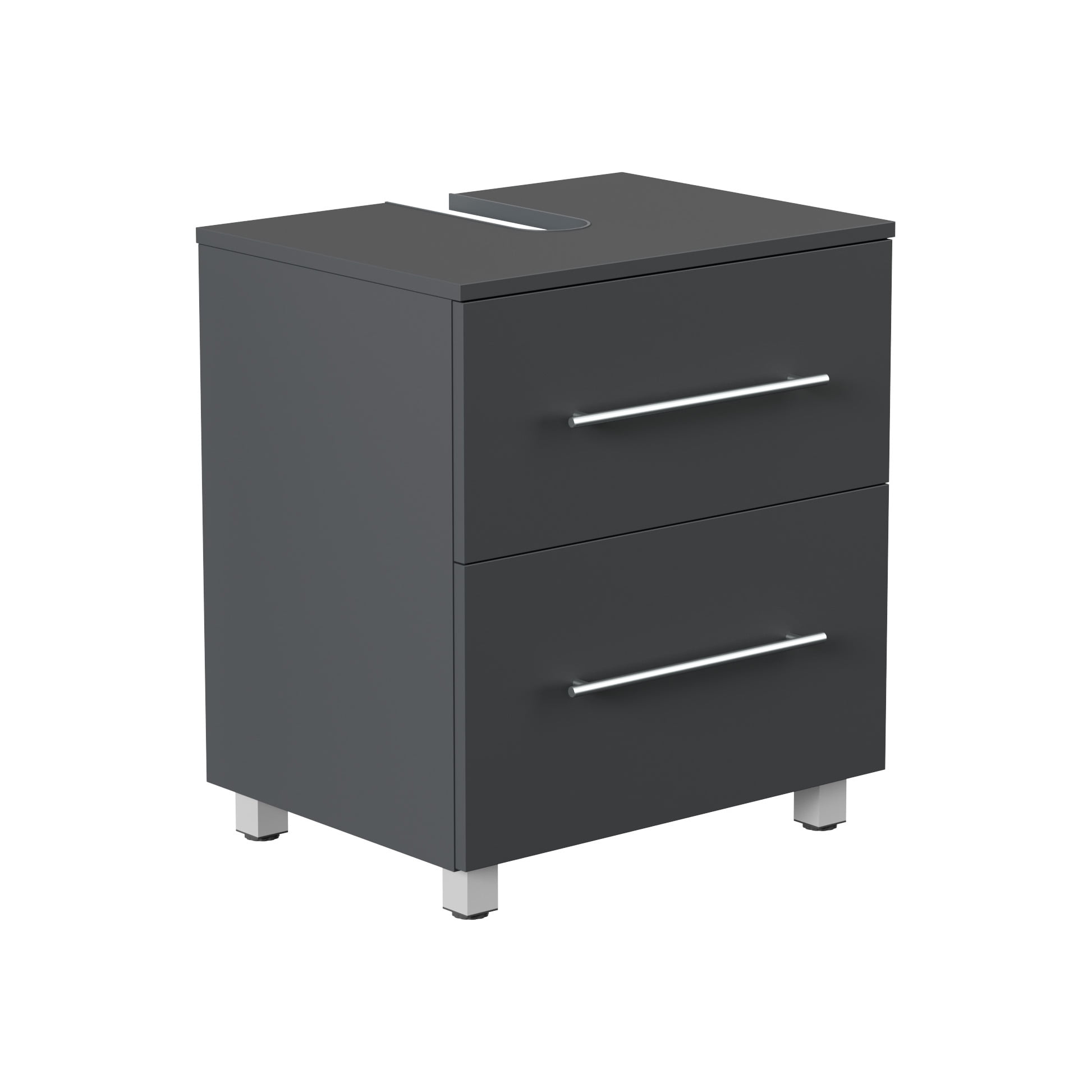 De Wastafelkast Glasgow Grafiet 55 cm biedt een strakke en moderne badkameroplossing, ontworpen in Duitsland. Dit meubel is vervaardigd uit hoogwaardig spaanplaat en afgewerkt met een matte grafiet coating voor een onderhoudsvriendelijke look. Met soft-close deuren en laden heeft deze kast volop opbergruimte. De afmetingen zijn 55 cm breed, 63 cm hoog en 41,6 cm diep.