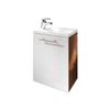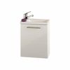Deze praktische wastafel kun je gemakkelijk in de kleinere ruimte kwijt. Met zijn afmetingen van 40 cm breed, 50,5 cm hoog en 22 cm diep ook goed te plaatsen in een toilet. Het deurtje kan zowel linksom- als rechtsom gemonteerd worden. Het meubel is afgewerkt met hoogglans spaanplaat-fronten en door zijn melamine afwerking is deze kast gemakkelijk schoon te houden en langer beschermd tegen stof, vuil en krassen. De wastafelkast wordt geleverd exclusief kraan, toevoerleidingen naar de kraan, afvoerplug en zwanenhals.