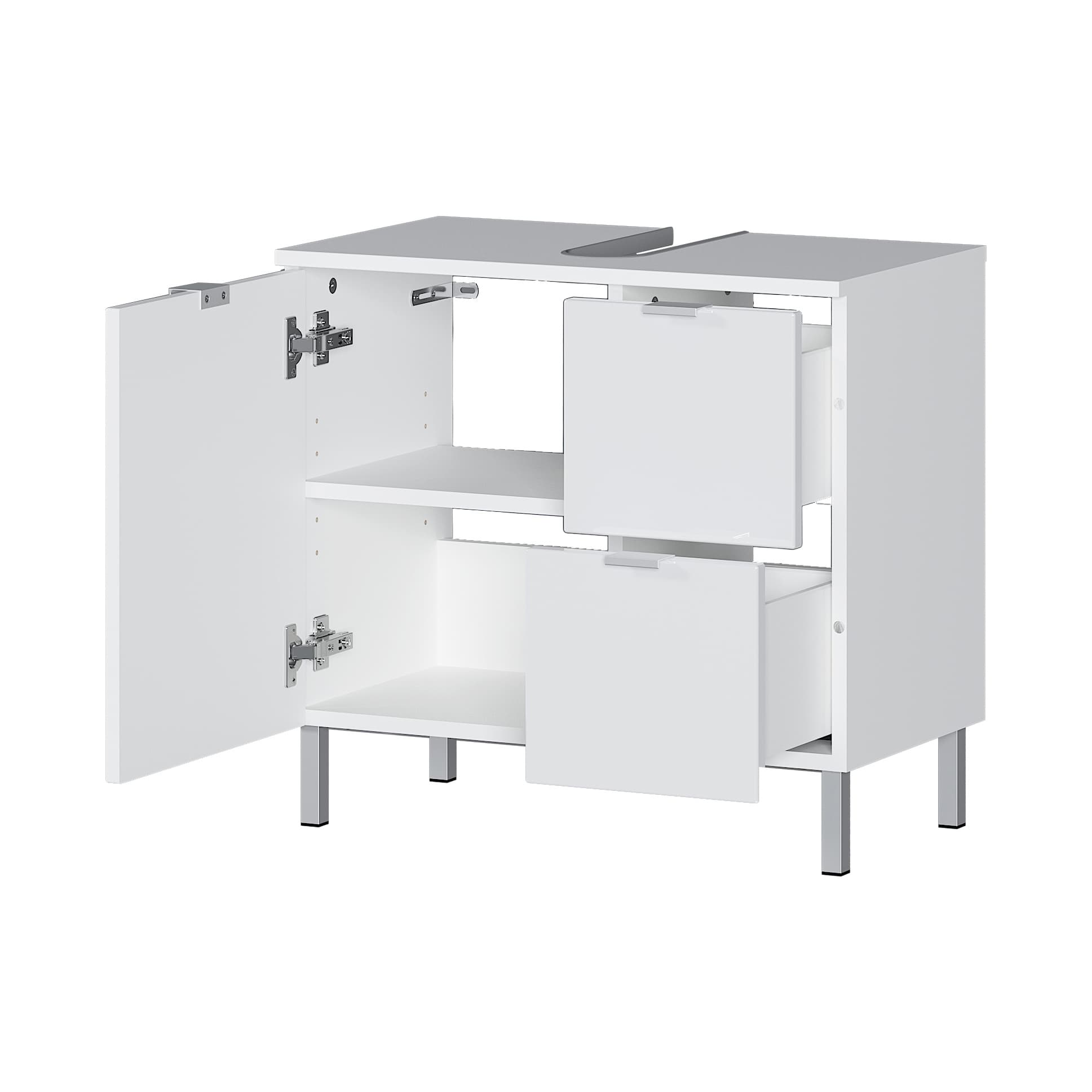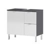 Met deze stijlvolle wastafelkast geef je je badkamer snel een luxe uitstraling. De badkamerkast heeft twee laden en een deur met daarachter een verstelbare legplank waardoor er voldoende ruimte is om al je spullen op te bergen. De deuren en lades zijn voorzien van soft-close waardoor ze geruisloos sluiten. Het meubel is afgewerkt met een degelijke melamine waardoor deze goed schoon te maken is. Maak je badkamer compleet met de andere meubelen uit deze serie.