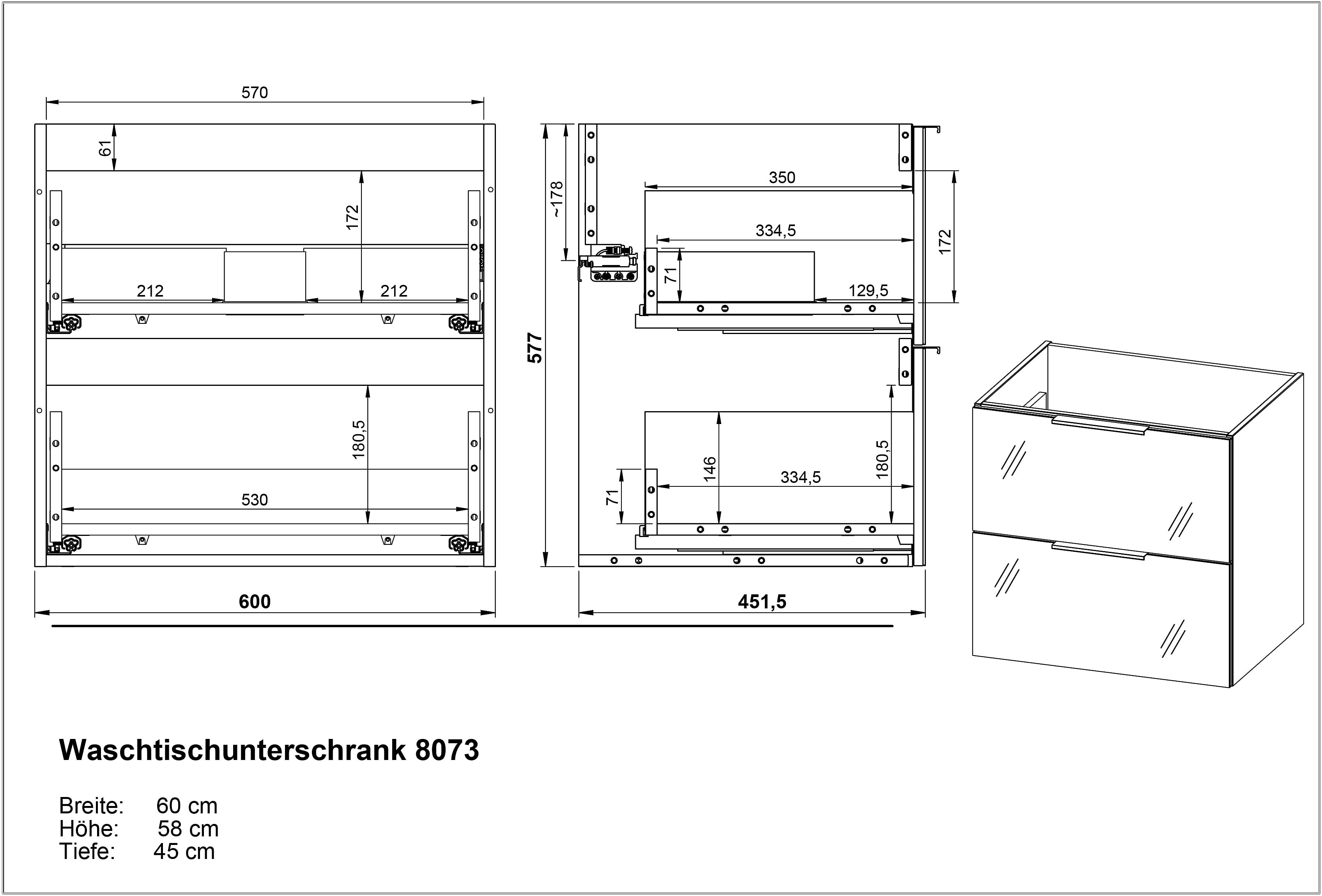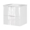 Met een formaat van 61 x 61 x 46 cm is deze wastafelkast compact en praktisch ingedeeld. De witte wastafel wordt meegeleverd, zodat je een complete oplossing hebt voor de badkamer.