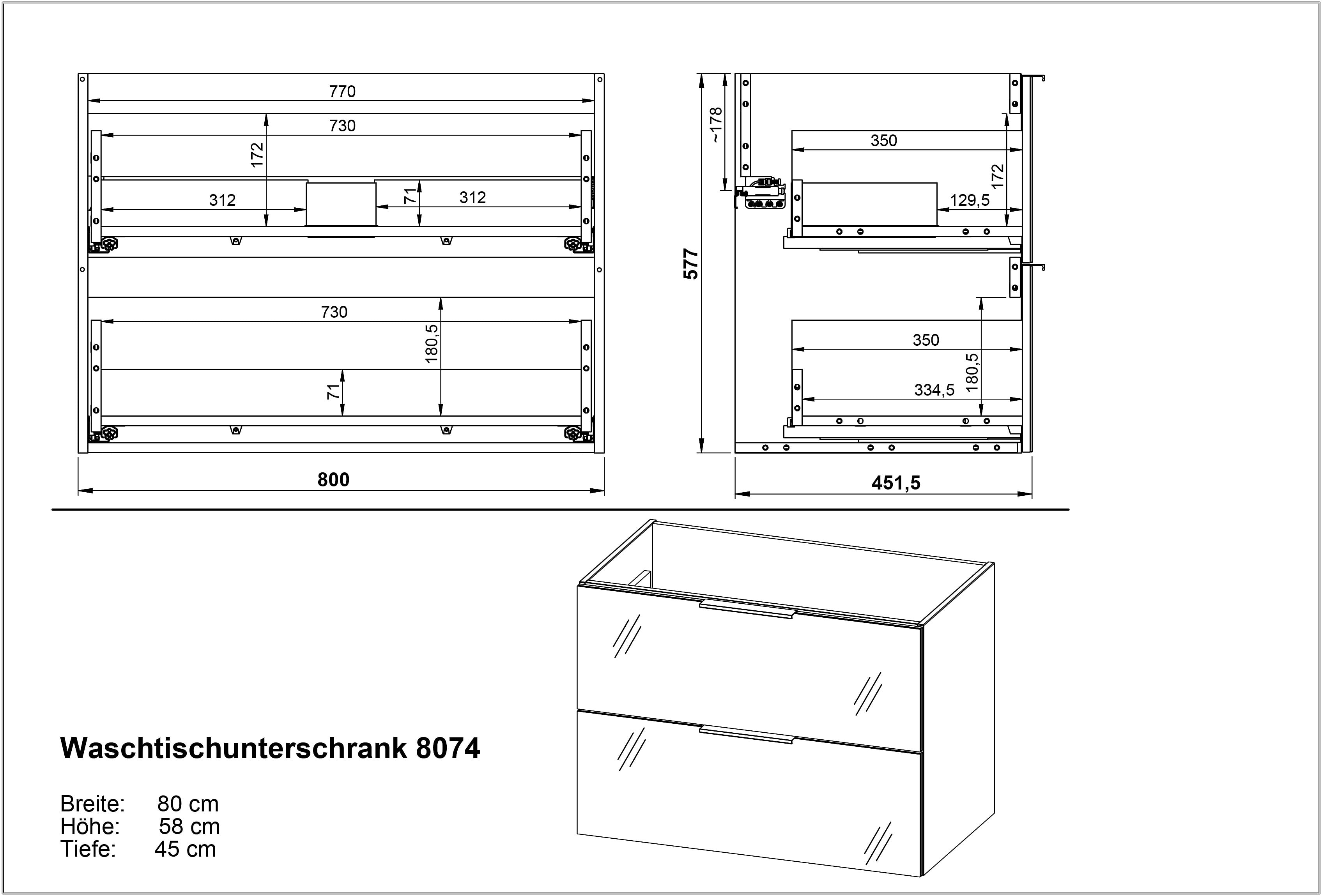 Met een breedte van 81 cm, een hoogte van 61 cm en een diepte van 46 cm biedt deze wastafelkast comfortabele opbergruimte. De witte wastafel wordt standaard meegeleverd.