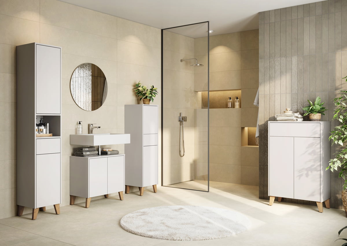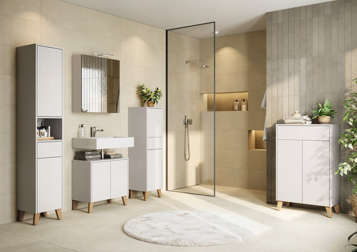 Een fijne wastafelkast die zorgt voor extra opbergruimte zonder dat de badkamer vol oogt.