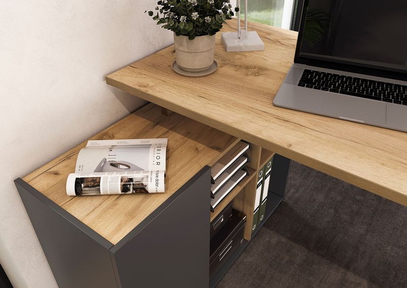 De Orlando-serie is de ideale keuze voor wie een moderne en georganiseerde thuiswerkplek wil creëren. Deze collectie, ontworpen in Duitsland en vervaardigd uit hoogwaardig spaanplaat, combineert een eigentijds ontwerp met slimme opbergmogelijkheden. Verkrijgbaar in diverse afwerkingen – zoals grafiet, kasjmier en eiken – kun je de meubels perfect afstemmen op jouw stijl en de inrichting van je kantoor.